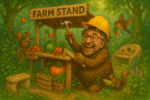 Gord caved…and the farm stand began. Then Bethany went back to her desk for a more creative image: