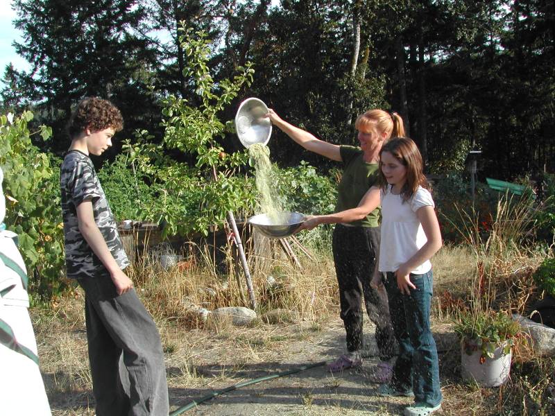 showing the kids how separate the Quinoa
