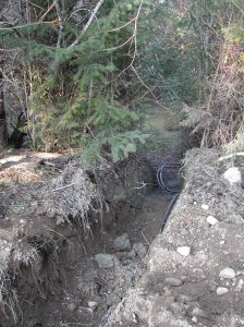 Jan 16, 2012 – Electrical permit.  Must pay the permit fee on entire solar installation cost.  Must install a new service connection in the lower garden.  Must install a minimum 100Amp service even though we don’t need it.  Must pay for a new transformer on the Hydro pole.  Must use toxic wood treatment on bottom of new service pole.  Living Building Challenge does not allow toxic materials red list items…so plan B.  NO new pole:  Build small shed for electrical to attach to and then bury cable all the way to the dwelling (100 ft).