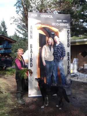 Many Highlanders may recognize Gord and Ann from 9 years of media coverage documenting their adventures creating the Eco-Sense homestead in the District of Highlands. Or they may recognize Ann and Gord from the full size road side “campaign” sign which we borrowed from the 2008 Royal BC Museum exhibit.