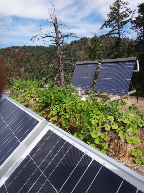 Solar real estate on the Eco-Sense roof: Growing food, producing electricity, making hot water, and harvesting rain water. Nice View too!