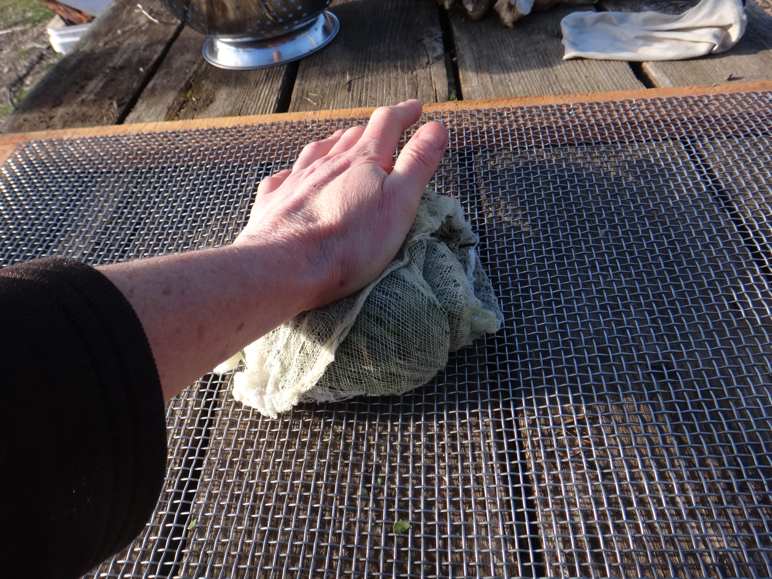 We harvested lots of nettles at our neighbours farm.  We were very grateful for this opportunity so as a thank-you we offered our neighbours a gift certificate to our nursery to buy some perennial edible plants.  Ann has been busy drying nettles for tea.  We have two 1/2 pint jars of nettle leaf tea for sale (no big stems).  ($8)