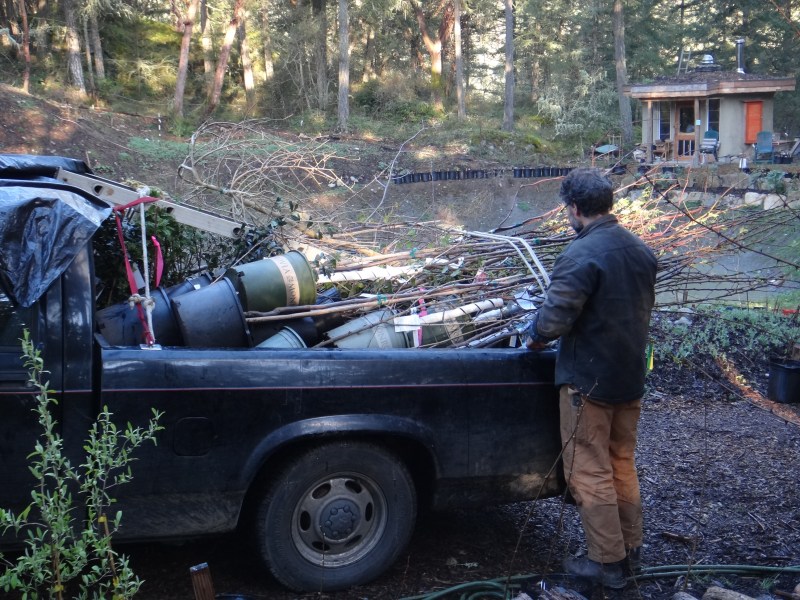 creative stacking of plants in our small pickup. worked very well.