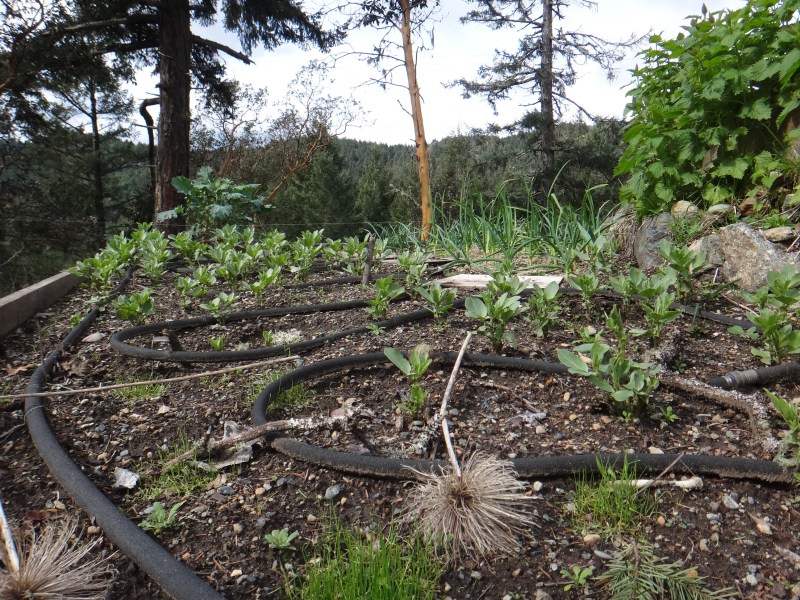 Spot the fava beans, nettles, garlic, and my leek starts.
