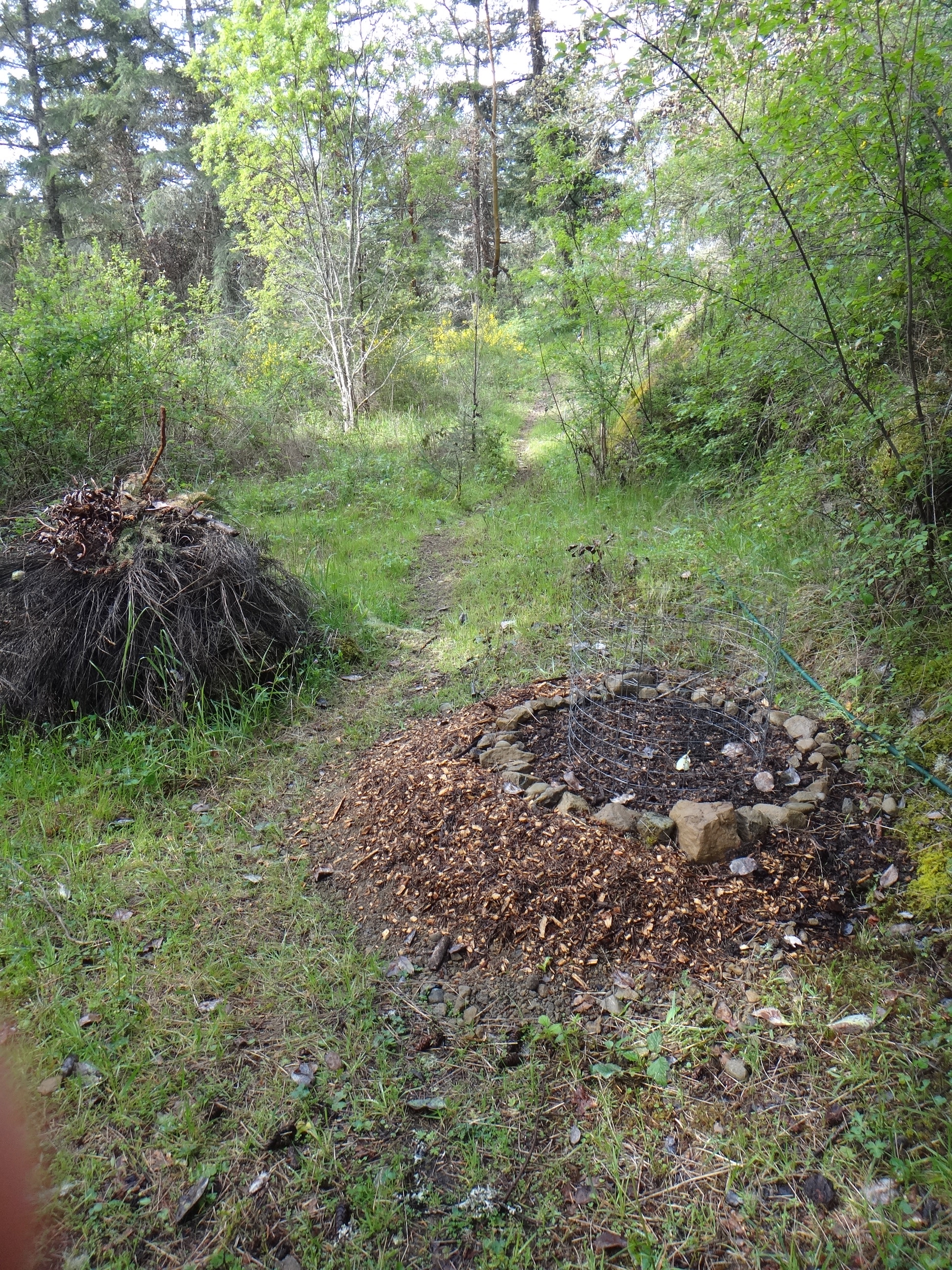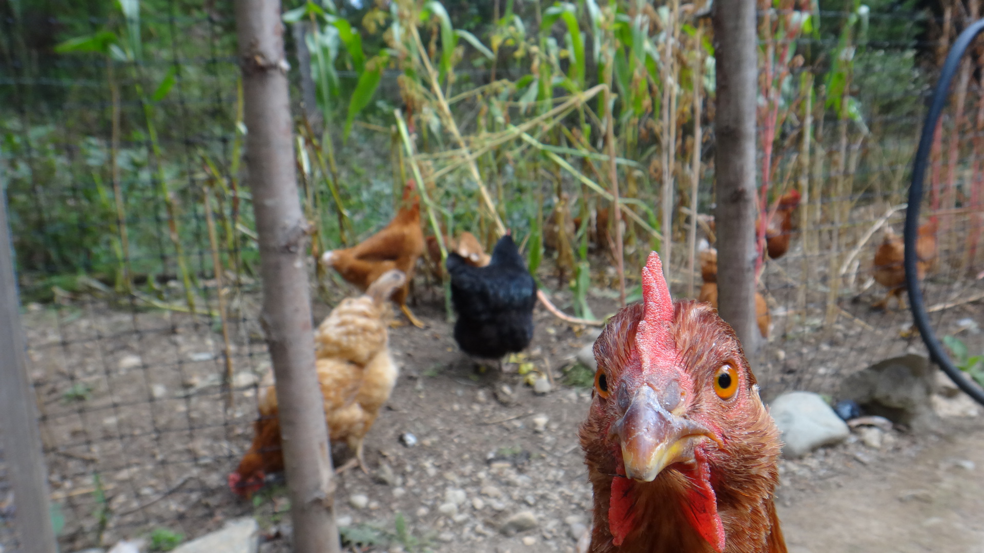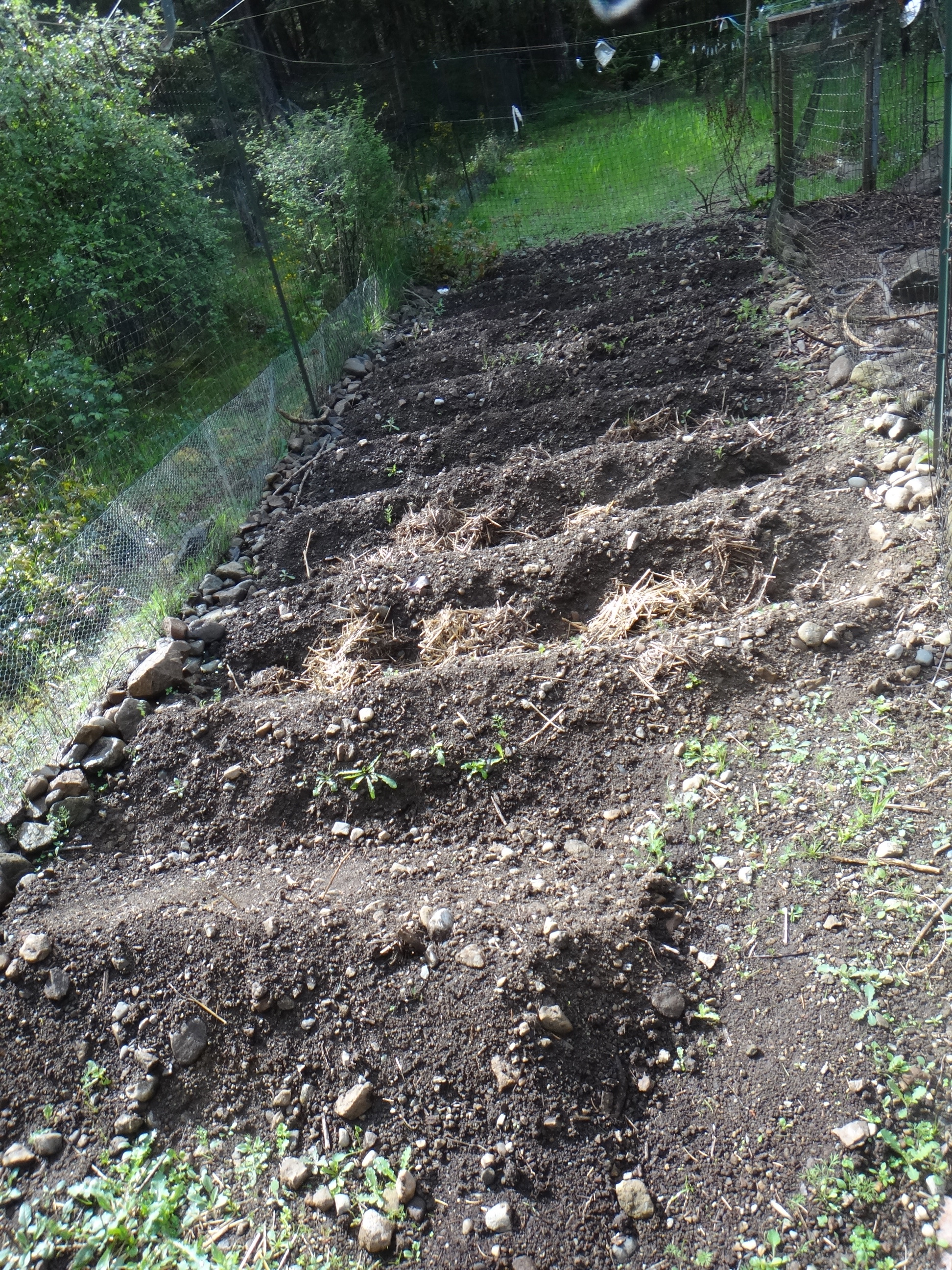 In the other two chicken fields we are trying to establish a pasture of various self seeding annual and perennial plants. The idea is to let the chickens in for say 1 day per week to eat bugs living in the lush foliage. There are some grains, (wheat oats, etc) buckwheat, kale, clovers, vetch and Jerusalem artichokes and lots of other “weeds”. The soil is full of worms…We’ll see what happens in the next month.