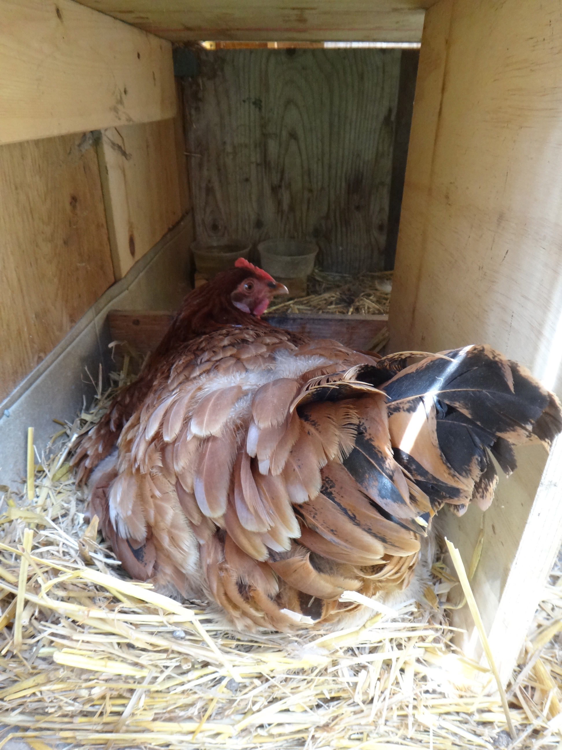 Chickens: We have a broody chicken sitting on about a dozen eggs. She is taking her job seriously and hardly leaves the nest. Ann is holding food and water up to her every morning which she graciously accepts.