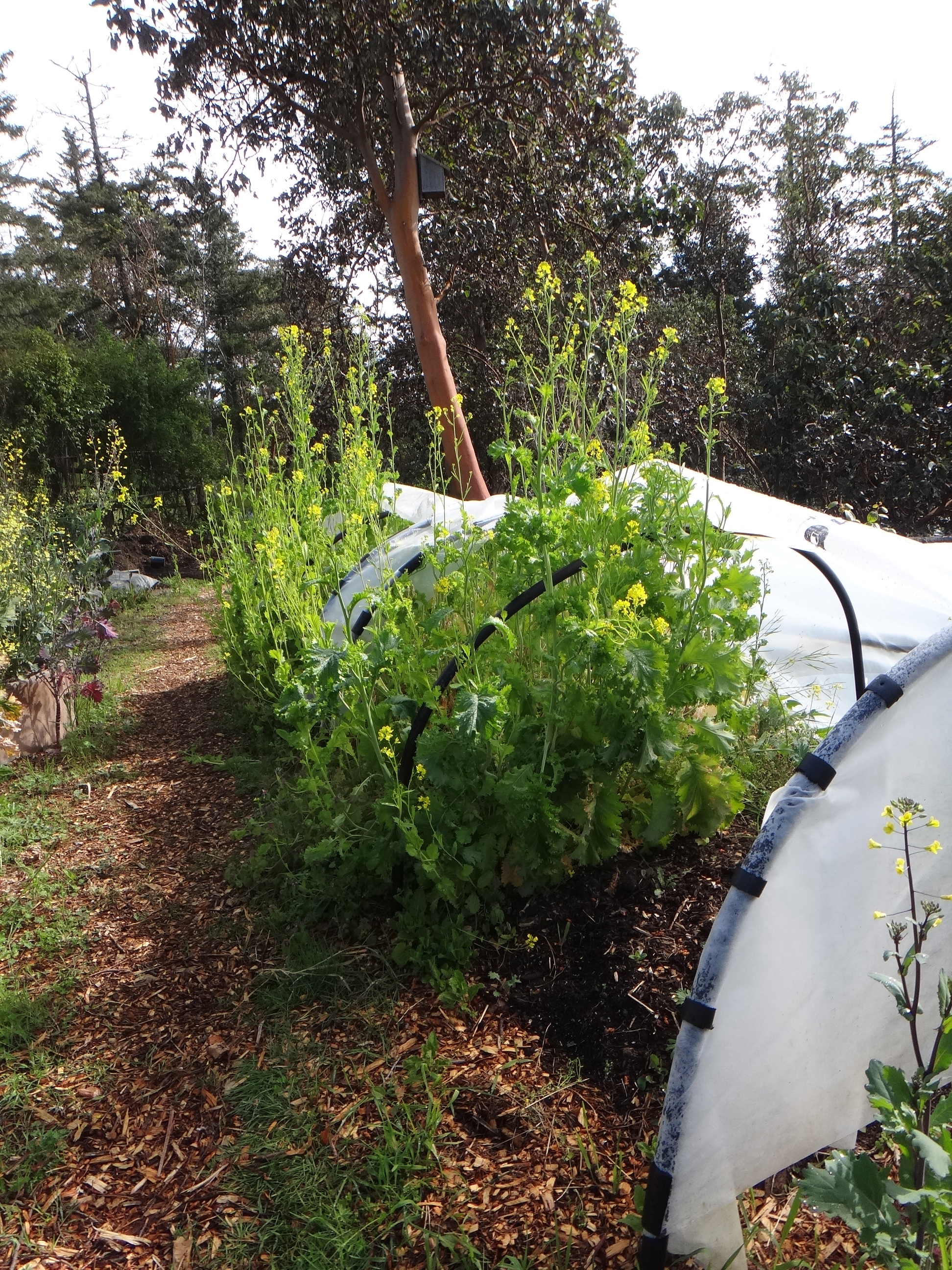Sweet potatoes have been selling like hot cakes…and we keep getting more starts growing. We have 4 types: Red Ginseng, Georgia Jet, Travis, and Superior. We grow them in a hoop cover…time to clean out the flowering mustard greens and get ready to plant when it’s warm enough.