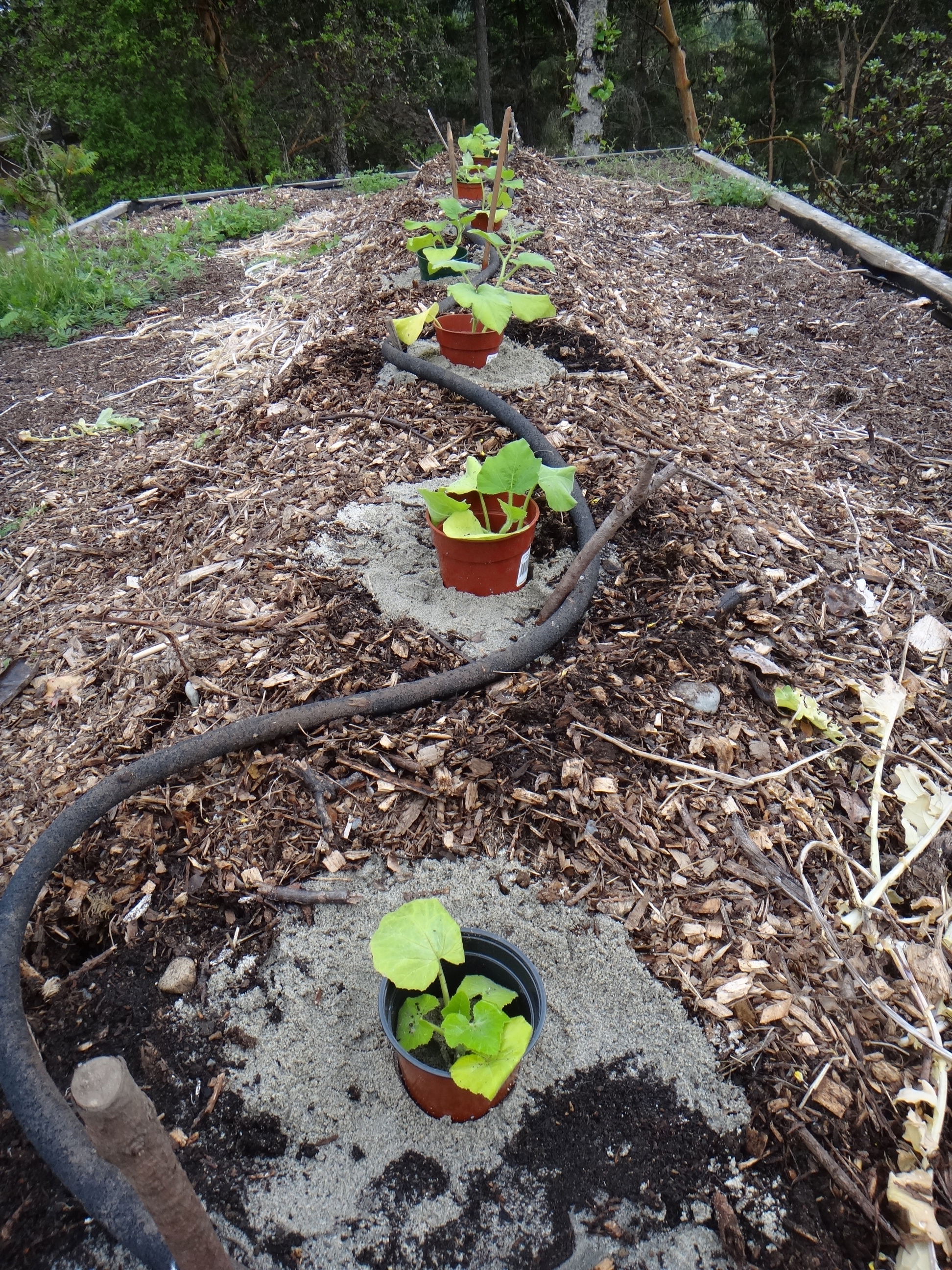 roof top squash garden planted with sand on top to discourage wood bugs. should have tried that with the peas.