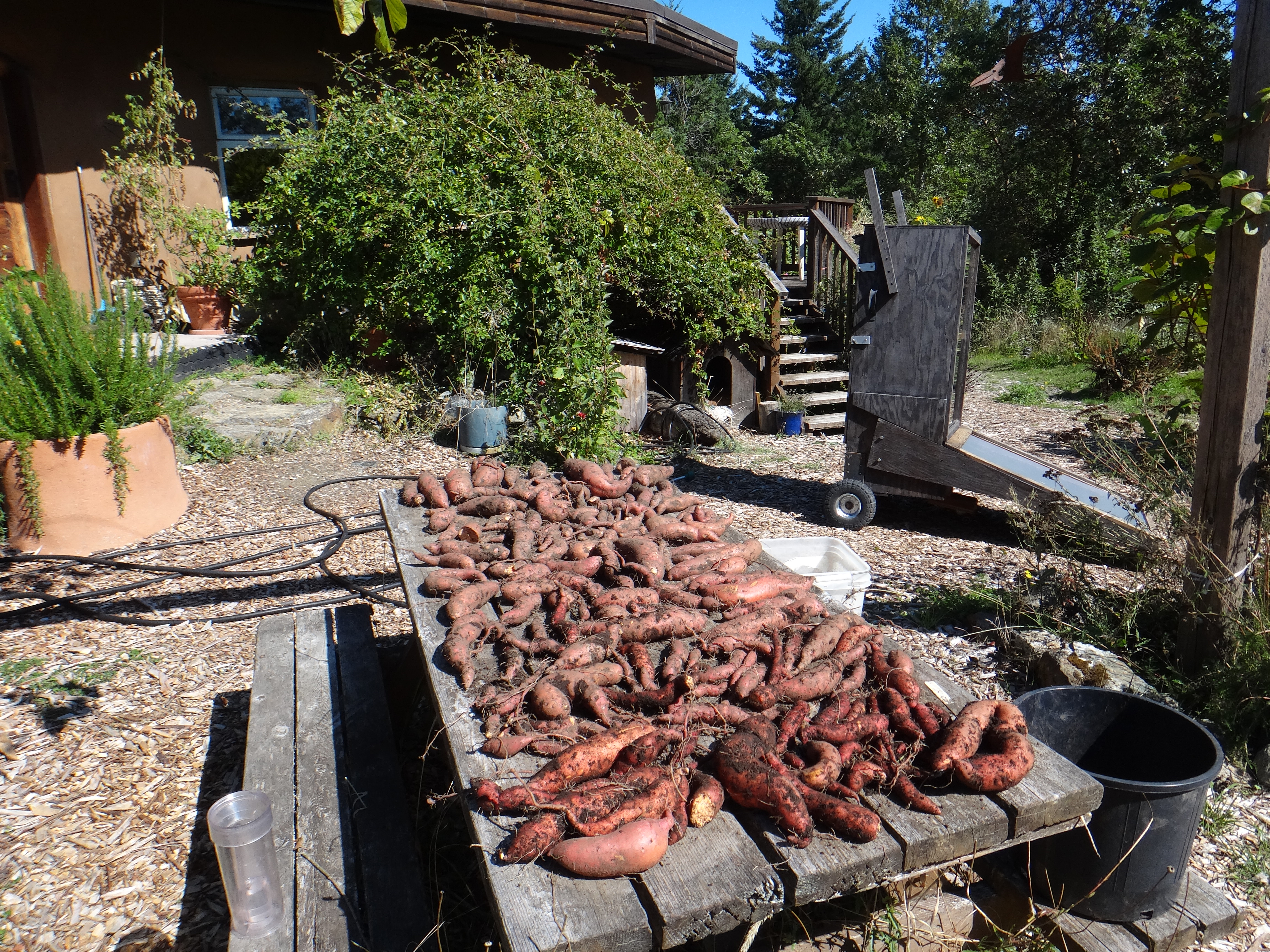 We have been having to reduce the rat population (snap traps) in order to enjoying our diversity of sweet potatoes, corn, beans, quinoa, tomatoes, peppers, beans, greens, potatoes, squash, melons, leeks, apples, plums, pears, and so on.  At least we no longer have a rabbit problem (we ate them all – and NO we didn’t eat the rats; the compost pile did).  Abundance is shared with nature as the biodiversity on this land grows.  The gardens are in full fall chaos as many plants have gone to seed and the bees are LOVING it.
