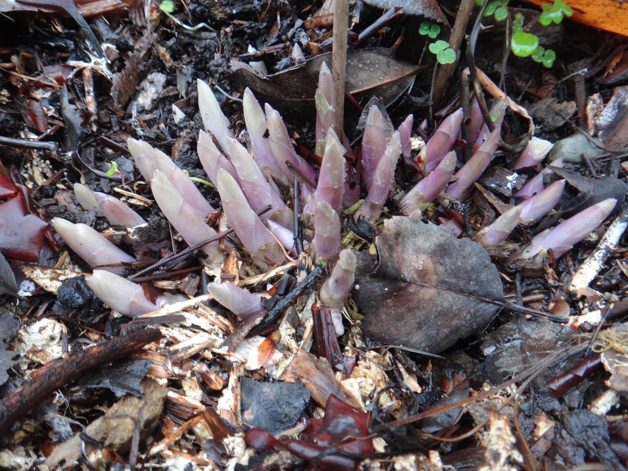 Hostas just coming up – taste similar to asparagus but easier to grow