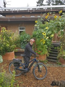 Transition: Like it or not we are ALL transitioning to a post carbon world. Instead of being forced kicking and screaming, we are going willingly and joyfully. We have been on this journey for some time and have recently made a bold move. We are selling the diesel Smart Car and have purchased two eBikes. WE LOVE THEM. (Note: still have the farm truck for very limited use). One bike is a mountain bike and the other is a cargo bike.