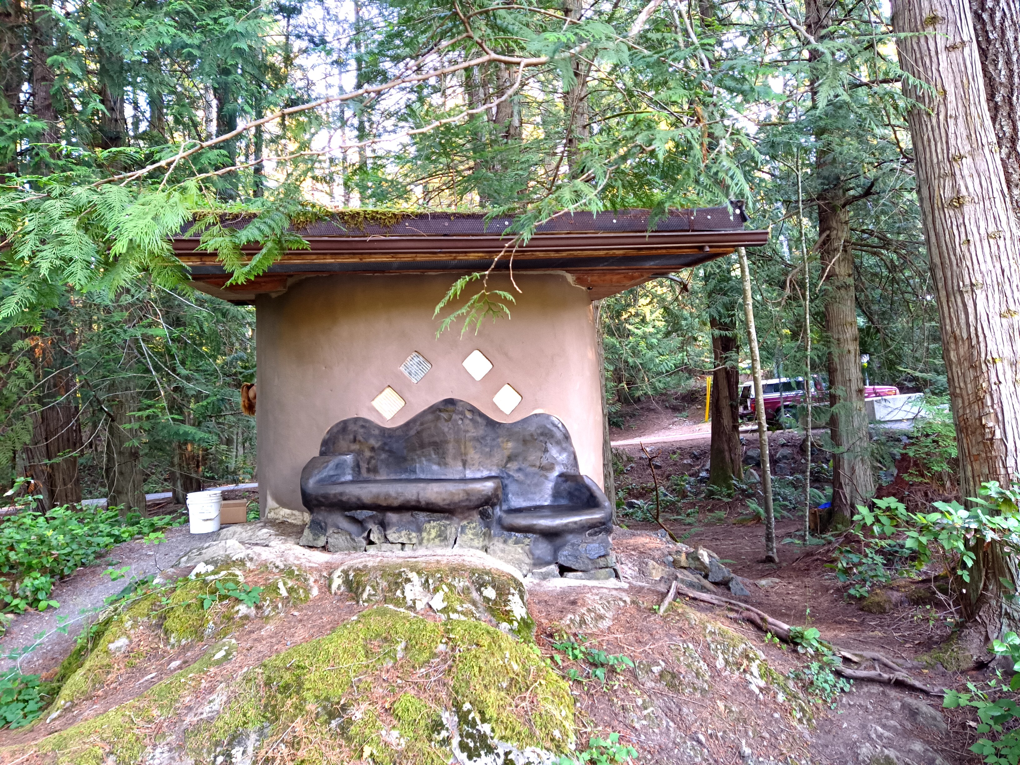 Now that we have learned methods to deal with Covid, and restrictions have lifted, the iconic local cob washroom is back in service. We had a neighbour reach out and offer to help cleaning which is great! The other day while repairing 2 years worth of penises carved into the clay, a 40+ year Highlands’ resident was by for an early morning walk. In her years as a resident she considers this decade old building a Highlands’ icon. This made us smile as we clay slipped, plastered, and sponged over the penises. Little bathroom is as good as new.