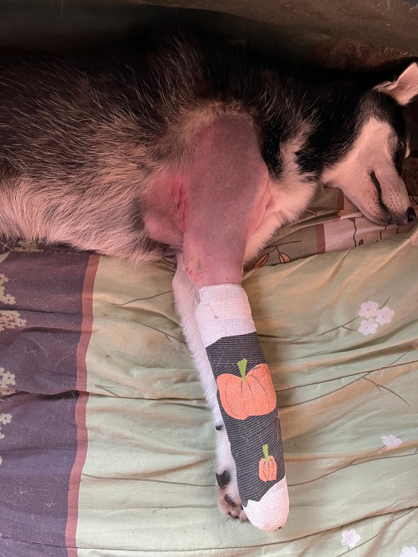 Pumpkin after surgery to put a plate and 6 screws in