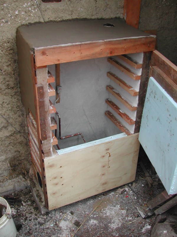 This is part of our solar thermal system… a heat dump that is also a solar dehydrator. The box is a clay/perlite box able to such moisture out of the foods. It is also hooked to the wood gassier so that we can add backup in shoulder season processing when needed.