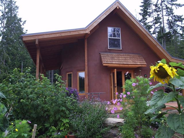 George residence – consulting, foundation, cob, curvilinear double stud framing, earthen floors, and brown coat plaster